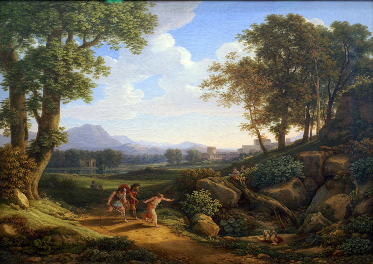 Η Υψιπύλη και οι Αργείοι τρέχουν να γλυτώσουν τον Οφέλτη από το φίδι. Έργο του 1816, του Johann Christian Reinhart (φωτό από: Wikimedia Commons).