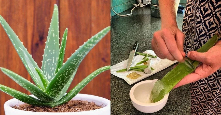 Σκίζουμε το φύλλο της αλόης στα δύο και αφαιρούμε το ζελέ. Ανακατεύουμε καλά με το λάδι (στο μπλέντερ γίνεται ευκολότερα), και εφαρμόζουμε στο τριχωτό της κεφαλής κάνοντας ελαφρύ μασάζ. Καλύπτουμε το κεφάλι μας*, και αφήνουμε όση περισσότερη ώρα γίνεται (σε κάθε περίπτωση όχι λιγότερο από 30 λεπτά). Στη συνέχεια λουζόμαστε **