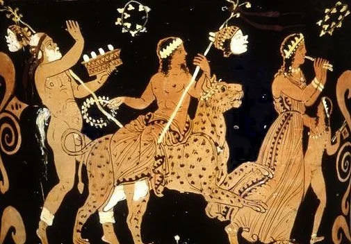 Οι Διονυσιακοί χοροί που είχαν οργιαστικό χαρακτήρα, εκτελούνταν από βακχικούς θιάσους ανδρών και γυναικών εκστασιασμένων και υπό επήρεια μέθης, με κισσούς στο κεφάλι. Οι Μαινάδες χόρευαν έξαλλα κρατώντας δάδες και θυρσούς, συνοδεία τυμπάνων και αυλού μέχρι να σωριαστούν, ενώ σ’ αυτούς τους χορούς ανάγεται και το αττικό δράμα.